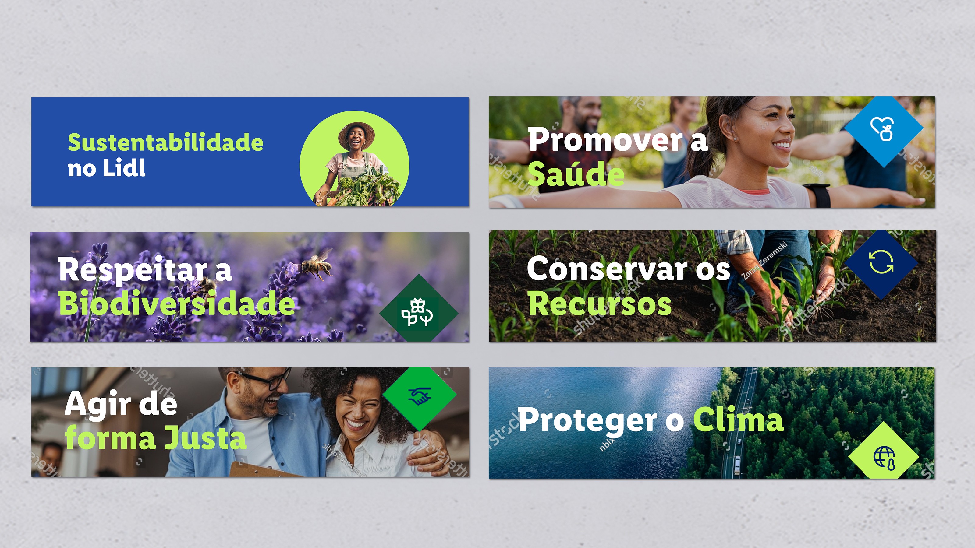 I created these banners for LIDL's employees website, following the brand guidelines (using CSR's colors and LIDL's image types) to create relatable images that LIDL's team members want to read.